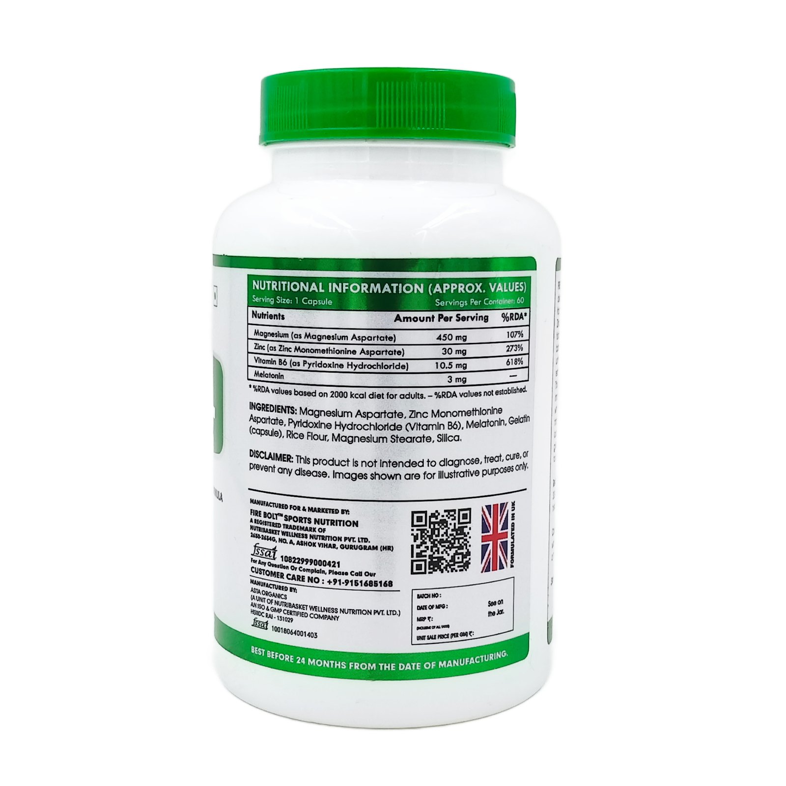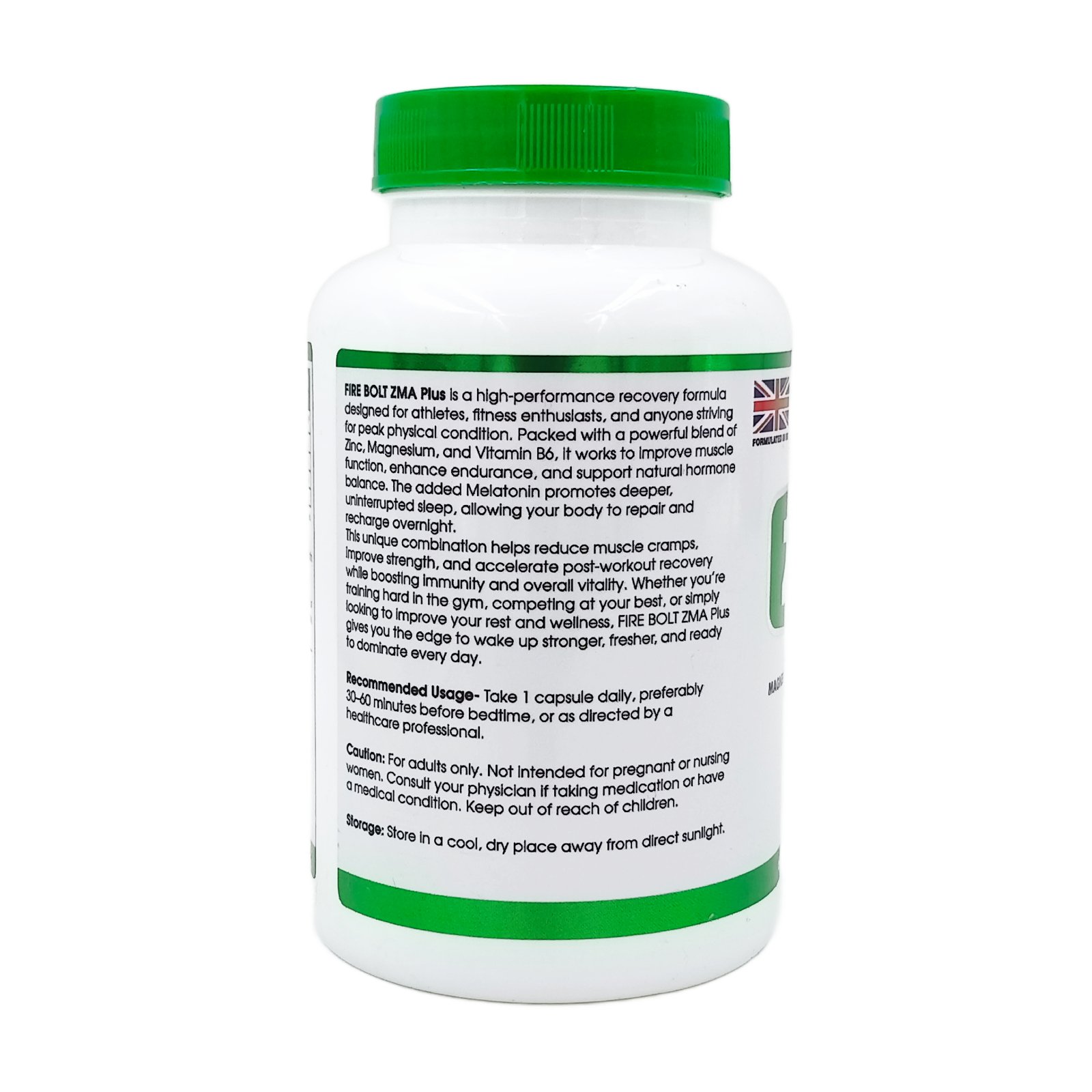 Firebolt Sports Nutrition ZMA+ is a performance-focused mineral formula combining zinc, magnesium, and vitamin B6 to support strength, recovery, and restful sleep. Designed for athletes and active individuals, it helps promote muscle recovery, maintain hormonal balance, and improve sleep quality—key factors for consistent training progress and overall wellness.