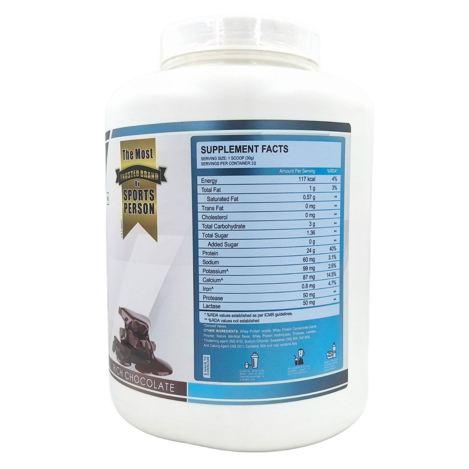 100% Whey Isolate instantly mixes with your favorite beverage. Simply stir, shake or blend 1 scoop (30g) with 180ml – 240ml water, milk or a beverage of your choice. For maximum results, take 1-2 scoops daily.