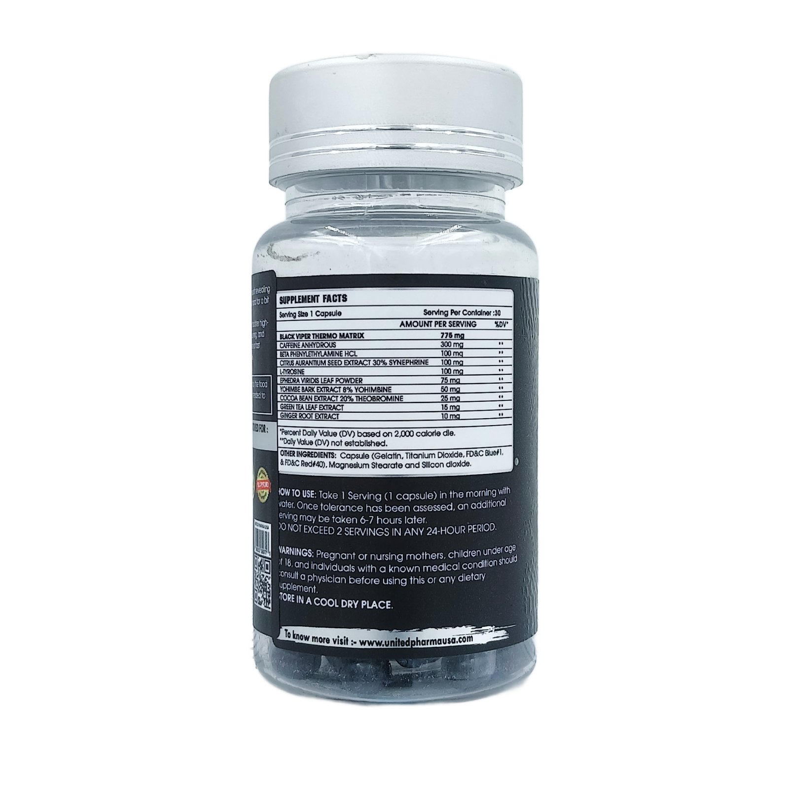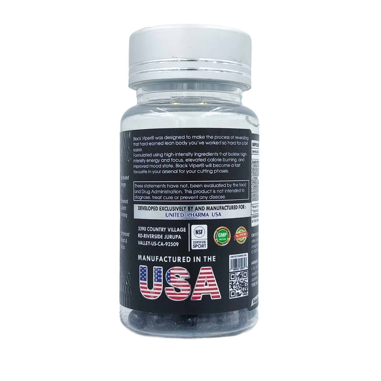 United Pharma USA Black Viper is a powerful fat-burning formula crafted to boost metabolism, increase energy, and enhance focus throughout the day. Designed for advanced athletes and fitness enthusiasts, it supports faster calorie burning, helps control appetite, and accelerates fat loss while maintaining lean muscle.