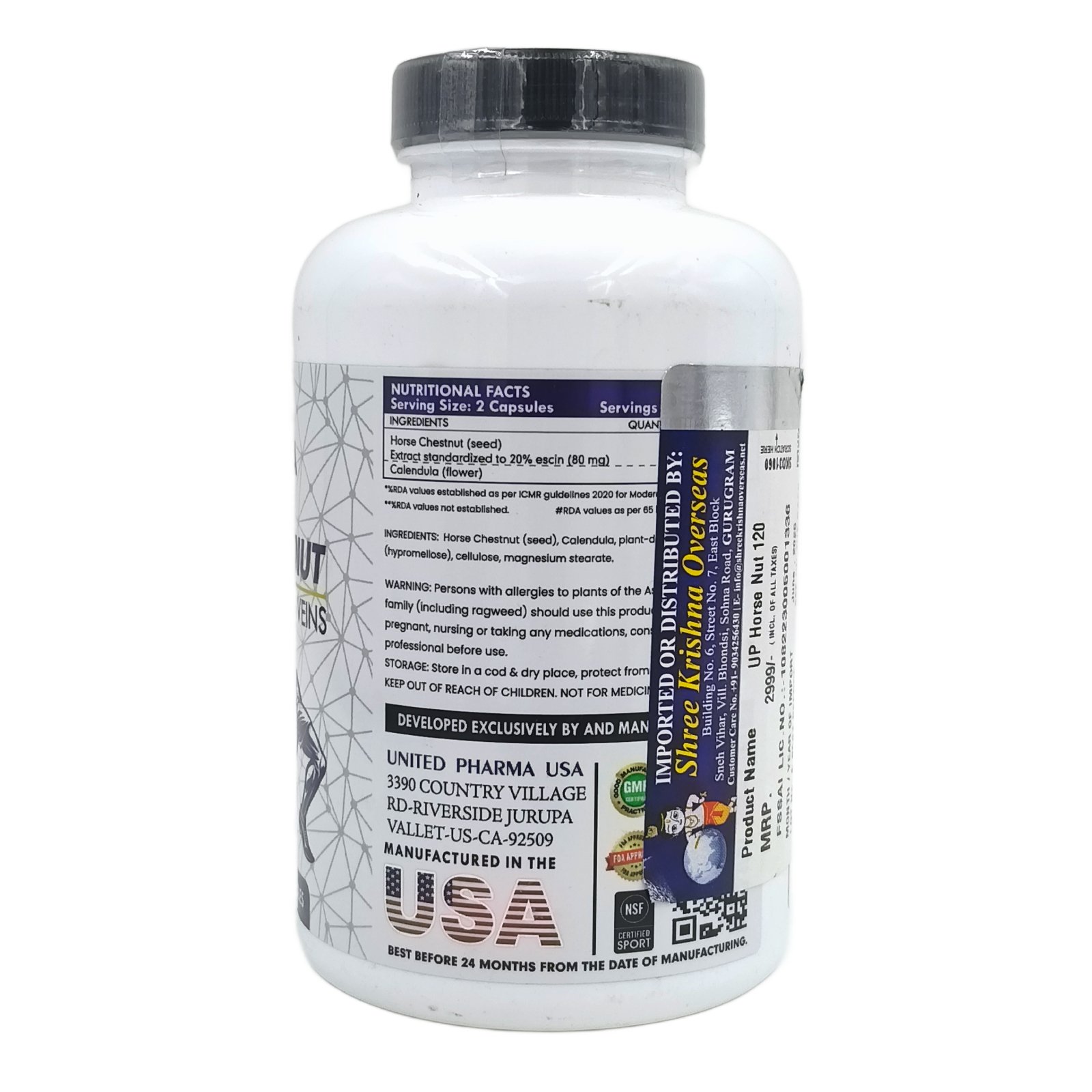 United Pharma USA Horse Chestnut is a natural herbal supplement traditionally used to support healthy blood circulation and vein function. It helps reduce swelling, heaviness, and discomfort in the legs while promoting vascular health. Ideal for individuals seeking natural support for vein strength, circulation, and overall leg wellness.